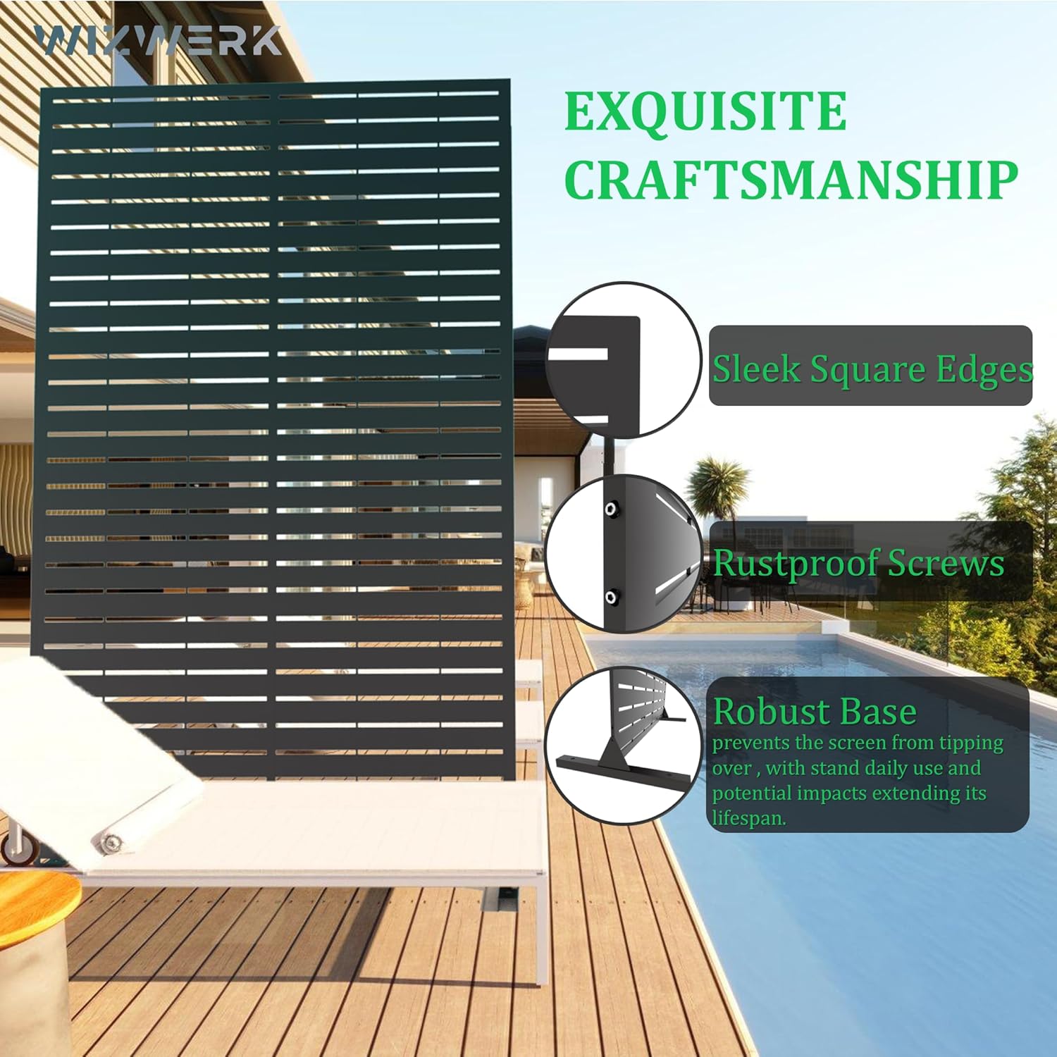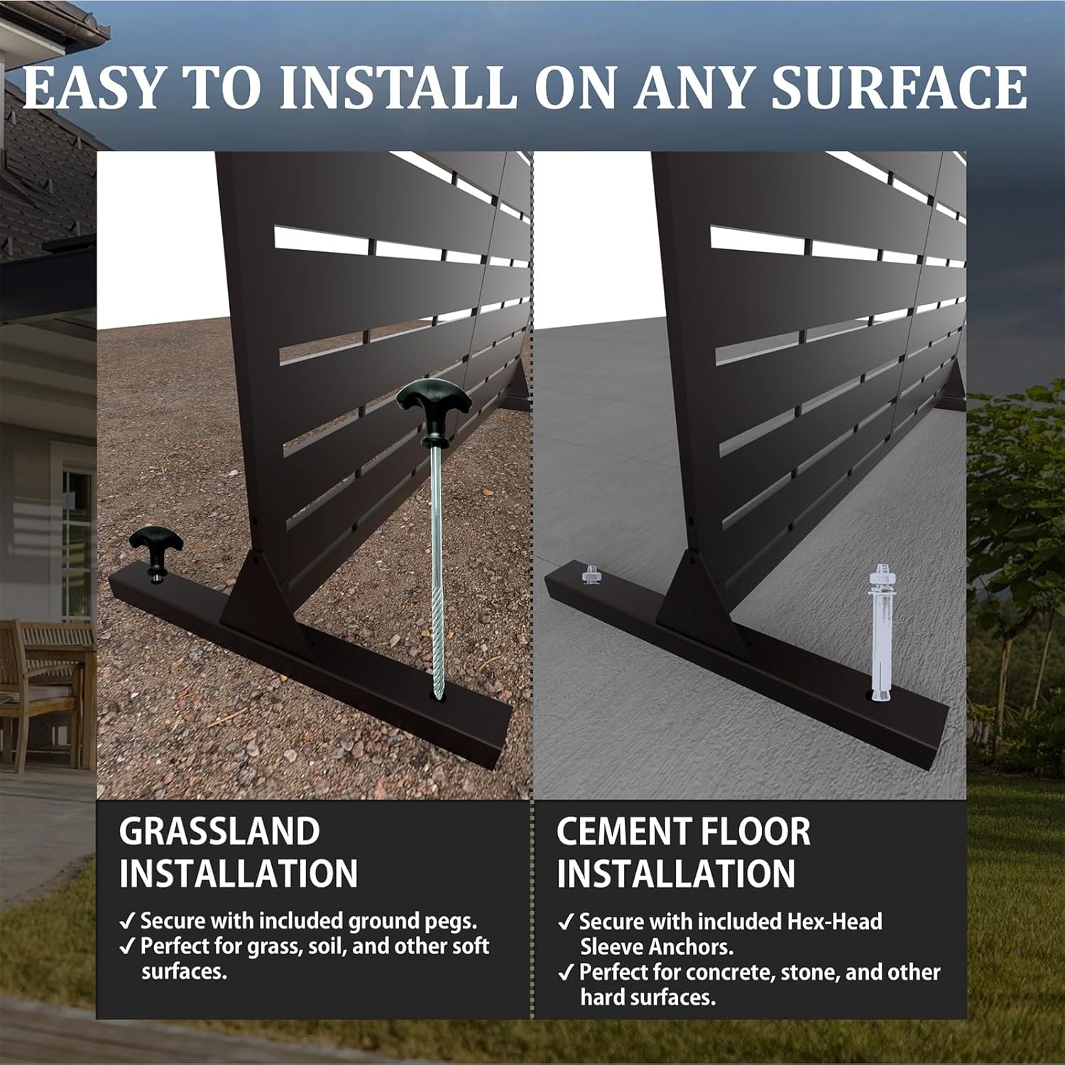 6FT Outdoor Metal Privacy Screen – Decorative Privacy Fence and Room/Garden Divider, Weather-Resistant Freestanding Panel with Stand, Durable Steel for Patio, Garden, Balcony, or Backyard