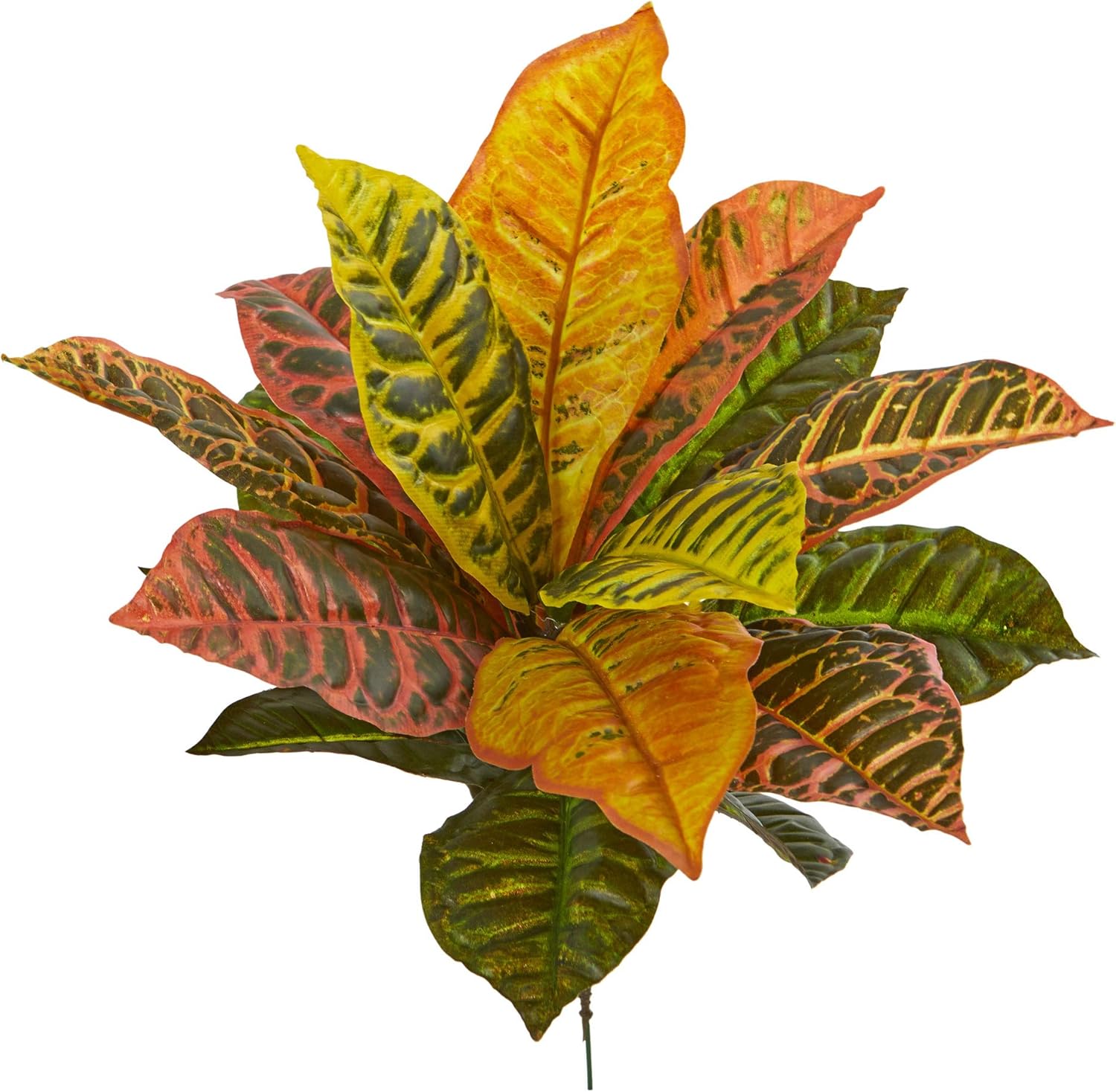 Nearly Natural 17” Garden Croton Artificial (Real Touch) (Set of 6) Silk Plants, Multi